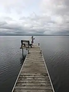 On the Juneau County side (west side), with the exception of Buckhorn State Park[21] and Yellow River State Wildlife Area,[22] the shoreline is more developed. There has been an influx of resort-type developments with small, man-made private lakes and deeded private docks access to Castle Rock Lake in the last few years. The majority of shoreline is undeveloped making the lake "less populated" and ideal for boating and skiing. There is also three major beaches Castle Rock Park, Castle Rock County Park Beach, and Buckhorn State Park Beach located around the lake.[2] The lake is also a hot spot for local anglers with ten boat launches available to the public located all around the lakes expansive shorelines, it even hosts fishing tournaments.[2] Castle Rock Lake is also a huge resource for the surrounding areas because of the hydroelectric dam located on the southern shoreline which provides energy to nearby settlements.