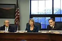 Catherine Andrea Giessel (née Bohms; born November 9, 1951)[1][2] is a Republican politician from the U.S. state of Alaska, who has served as a member of the Alaska Senate since 2023 and from 2011 to 2021. From 2013 to 2021, Giessel represented District N in the Alaska Senate, including Northeast Anchorage, Anchorage Hillside and the Turnagain Arm communities of Bird, Girdwood, Indian, and Anchorage, all within the Municipality of Anchorage. First elected in 2010 while identifying with Tea Party values, she has also served as the vice-chair of the state Republican Party and had a career in nursing. Following redistricting, she was elected to a different senate seat in 2012. Giessel serves as chair of the Resources Committee and is a member of the Senate Majority Caucus.[3] After Senate President Pete Kelly was unseated in 2018, Giessel was elected president of the Alaska Senate, a post she held until 2021. Giessel returned to the Alaska Senate in 2023, representing the newly configured District E after defeating incumbent Republican Roger Holland. She will serve as Senate majority leader in the 33rd Legislature, overseeing a coalition caucus of eight Republicans and nine Democrats.