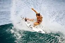 At age 7, Coco Ho began following in the footsteps of her surfer family. Her father, Michael Ho, was formerly a professional surfer (World Cup and 1982 Pipe Masters), as was her uncle, Derek Ho (1993 World Champion). Her brother, Mason Ho (1st Place Cold Water Classic ASP Pro Jr. 2008), played a major role in her early surfing influences.[1] Ho earned her first sponsorship at 8-years-old, and at age 17, she qualified for the ASP Women's World Championship Tour. In 2009, she won the Rookie of the Year award. Raised on Oahu's North Shore, Ho spent most of her time surfing the "Seven Mile Miracle.” She is the face for the Volcom clothing brand.[2]