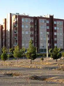Mehr project, designed in 2007, aimed to cover a part of house shortage through building of around 2 million housing units within 5 years.[14] As of January 2011, the banking sector, particularly Bank Maskan has given loans up to 102 trillion rials ($10.2 billion) to applicants of Mehr housing project.[15][16] Under this scheme real estate developers are offered free lands in return for building cheap residential units for first-time buyers on 99-year lease contracts. The government then commissioned agent banks to offer loans to the real estate developers to prepare the lands and begin construction projects in an attempt to increase production and create equilibrium in the supply and demand curve (2008). Close to 400,000 units have been built and permits have been issued for another 12,000.[17] Mehr Housing project is expected to provide 600,000 residential units in its first phase.[18] About 3.7 million people have so far registered for Mehr Housing Plan (2008). About 10 million rials is to be paid by applicants for preparing the land and another 10 million to be given by the government in the form of banking facilities. Applicants should pay about 20 percent of the construction costs. In addition, about 140 million rials worth of housing loans will be granted to them (10,000 rials=1 USD in 2008).[19] While most Iranians have difficulties obtaining small home loans, 90 persons have managed to secure collective facilities totaling $8 billion from banks. Problems regarding lack of utilities has been reported for the project, including lack of access to water, power, gas, and sewerage lines.[14] Starting in 2014, the Mehr housing scheme will be taken off the balance sheet of the Central Bank of Iran. The government of President Rouhani announced that by 2017 the Mehr housing project will be replaced with cheap loans to needy families with the stated objective to build only 150,000 homes on a yearly basis.[20]