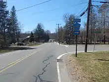 County Route 560 (abbreviated CR 560 and locally known as Tuttles Corner Road) is a county highway in the U.S. state of New Jersey. The highway extends 5.05 miles (8.13 km) from U.S. Route 206 and County Route 521 in Sandyston Township. CR 560 ends at the Pennsylvania state line, where it becomes Pike County Quadrant Route 2019, which connects to Pennsylvania Route 739. CR 560's entire length is in Sandyston. However, CR 560 does pass through the hamlet of Layton.