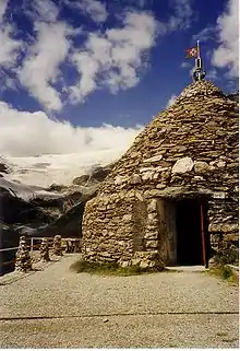 A crotto (plural: crotti, in Puschlav dialect - singular and plural: crot) is a round, domed, one-roomed house. Crotti represent a special feature of the Swiss Val Poschiavo, but can also be found in the neighboring valleys of the Italian Valchiavenna.