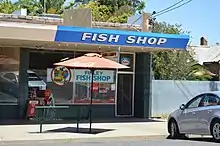 Fish and chips is a take-away food that originated in the United Kingdom and remains popular in Australia.[41] It generally consists of battered deep-fried fish with deep-fried chipped (slab-cut) potatoes. Rather than cod which is more common in the UK, the most popular fish at Australian fish and chips shops, at least in southern Australian states, is flake, a fillet of gummy shark (Mustelus antarcticus).[42]