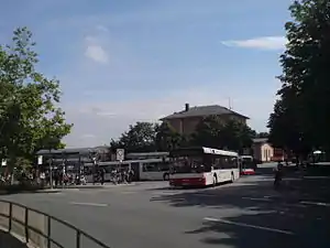 The city is served by Munich S-Bahn (S2) and Deutsche Bahn via Dachau railway station located in the South of the town. The station is also annexed to the central bus terminal. In Dachau the line S2 is split in two directions: Petershausen and Altomünster. Both lines are named S2 but with different direction names. The offshoot to Altomünster is also served by Dachau Stadt Railway Station which is much smaller than the main railway station. There are five bus lines which are operated by Stadtwerke Dachau: 719, 720, 722, 724 and 726. There is no tramway transport.