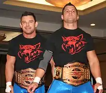 On April 10 at a television taping of Ring of Honor Wrestling, The American Wolves were able to capture the World Tag Team Championship from Steen and Generico in a Tables are Legal match.[30] At Tag Title Classic, the Wolves took on the team of Bryan Danielson and Tyler Black. The match ended in 45-minute time-limit draw, the first time in ROH history that a World Tag Team Championship match had ended in a time-limit draw. The next weekend, Richards defeated Kevin Steen in a singles match, before he and Edwards defeated Steen and Jay Briscoe in a two out of three falls match to retain the World Tag Team Championship.[32]
