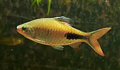 Dawkinsia exclamatio is a species of cyprinid fish found in Kallada River, Kerala, India where it occurs in areas with clear water with pebble and rock substrates. This species can reach a length of 8.3 centimetres (3.3 in) SL.[2]