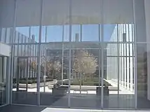 Designed by Moriyama & Teshima Architects in collaboration with the Pritzker Prize–winning architect Fumihiko Maki,[9] the Ottawa Delegation is the first building in the world that will represent the Ismaili Imamat and its institutions.[3] It is configured as an elongated, rectangular ring, surrounding an interior atrium and an exterior courtyard that features a traditional Chahr-bagh Islamic garden.[1][2] The building rests on a solid linear granite podium, and is covered by a glass dome through which light illuminates the atrium and courtyard.[1] The building as a whole is inspired by natural rock-crystal and is an interplay of visual clarity, opacity and translucency. It houses meeting rooms, exhibition areas, a lecture theatre, resource center, and private apartments.[3]