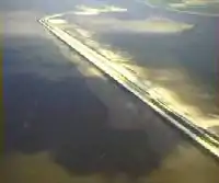 The Delta Project of which the Delta Works are part of was originally designed in a period of time when environmental awareness and ecological effects of engineering projects were barely taken into consideration.[7] Although the level of awareness for the environment grew throughout the years, the Delta Project has caused numerous irreversible effects on the environment in the past. Blocking the estuary mouths did reduce the length of dykes that otherwise would have to be built to protect against floods, but it also led to major changes in the water systems. For example, the tides disappeared, which resulted in a less smooth transition from sea water into fresh water. Flora and fauna suffered from this noticeable change.[8] In addition, rivers got covered up by polluted sludge, since there was no longer an open passage to the sea.