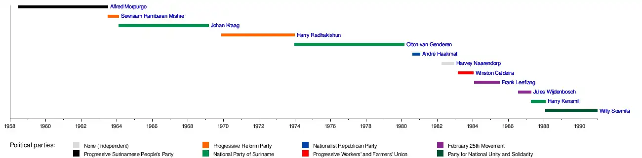 11. "AROUND THE WORLD; New Civilian Cabinet Installed in Suriname". The New York Times. 1 April 1982. Retrieved 15 December 2020.