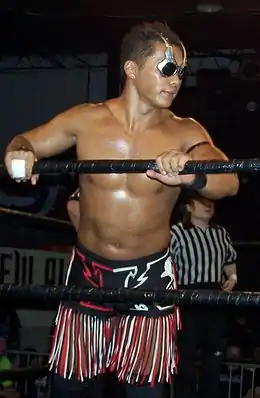 The Open the Dream Gate Championship (オープン・ザ・ドリームゲート王座, Ōpun za Dorīmugēto Ōza) is a professional wrestling championship created and promoted by the Japanese promotion Dragon Gate.[2] The wrestler who holds it is considered the top singles wrestler in Dragon Gate. It was created on July 4, 2004 when Cima was awarded the title as a result of being the last Último Dragón Gym Champion.[3]
