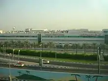 The airport's landside facilities were modified to allow the construction of two stations for the Red Line of Dubai Metro. One station was built at Terminal 1 and the other at Terminal 3. The line began service on 9 September 2009, and opened in phases over the next year.[34] The second Metro line, the Green Line, runs near the Airport Free Zone and has served the airport's north-eastern area with the Terminal 2 starting in September 2011.[35]