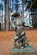 A bronze statue of a mother bear and two cubs by animal sculptor Anna Hyatt Huntington is placed near the entrance to two major trails.