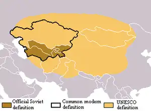 China, Japan, and Korea represent the three core countries and civilizations of traditional East Asia - as they once shared a common written language, culture, as well as sharing Confucian philosophical tenets and the Confucian societal value system once instituted by Imperial China.[99][100][101][102][103] Other usages define Mainland China, Hong Kong, Macau, Japan, North Korea, South Korea and Taiwan as countries that constitute East Asia based on their geographic proximity as well as historical and modern cultural and economic ties, particularly with Japan and Korea having strong cultural influences that originated from China.[99][103][104][105][106][107] Some scholars include Vietnam as part of East Asia as it has been considered part of the greater Chinese sphere of influence. Though Confucianism continues to play an important role in Vietnamese culture, Chinese characters are no longer used in its written language and many scholarly organizations classify Vietnam as a Southeast Asian country.[108][109][110] Mongolia is geographically north of Mainland China yet Confucianism and the Chinese writing system and culture had limited impact on Mongolian society. Thus, Mongolia is sometimes grouped with Central Asian countries such as Turkmenistan, Kyrgyzstan, and Kazakhstan.[108][109] Xinjiang (East Turkestan) and Tibet are sometimes seen as part of Central Asia.[111][112][113]