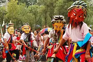 Major religions in East Asia include Buddhism (mostly Mahayana),[13] Confucianism and Neo-Confucianism, Taoism,[14] ancestral worship, and Chinese folk religion in Mainland China, Hong Kong, Macau and Taiwan, Shinto in Japan, and Christianity, and Musok in Korea.[15][16][17] Tengerism and Tibetan Buddhism are prevalent among Mongols and Tibetans while other religions such as Shamanism are widespread among the indigenous populations of northeastern China such as the Manchus.[18] Major languages in East Asia include Mandarin Chinese, Japanese, and Korean. Major ethnic groups of East Asia include the Han (mainland China, Hong Kong, Macau, Taiwan), Yamato (Japan) and Koreans (North Korea, South Korea). Mongols, although not as populous as the previous three ethnic groups, constitute the majority of Mongolia's population. There are 76 officially-recognized minority or indigenous ethnic groups in East Asia; 55 native to mainland China (including Hui, Manchus, Chinese Mongols, Tibetans, Uyghurs and Zhuang in the frontier regions), 16 native to the island of Taiwan (collectively known as Taiwanese indigenous peoples), one native to the major Japanese island of Hokkaido (the Ainu) and four native to Mongolia (Turkic peoples). Ryukyuan people are an unrecognized ethnic group indigenous to the Ryukyu Islands in southern Japan, which stretch from Kyushu Island (Japan) to Taiwan. There are also several unrecognized indigenous ethnic groups in mainland China and Taiwan.