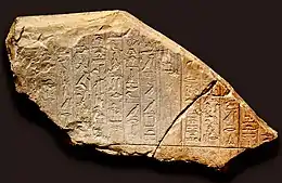 - ↑ Ryholt, Kim (2000). "The Late Old Kingdom in the Turin King-list and the Identity of Nitocris". Zeitschrift für Ägyptische Sprache und Altertumskunde. see p. 88, fig. 1 and p. 91. 127 (1): 87–119. doi:10.1524/zaes.2000.127.1.87. ISSN 2196-713X. S2CID 159962784.