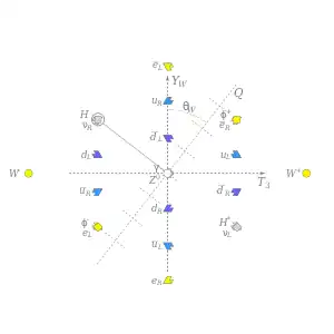- ↑ Note that U(1)Y and U(1)em are distinct instances of generic U(1): Each of the two forces gets its own, independent copy of the unitary group.