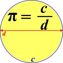 Example of variables showing the relationship between a circle's diameter and its circumference. For any circle, its circumference c, divided by its diameter d, is equal to the constant pi, (approximately 3.14).