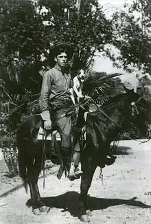 The Yaqui's just as the Flores Magon had done revolted against Madero's government and began attacking military outpost throughout the country. Holmdahl soon met his new commanding officer, General Benjamin Viljoen, who had been appointed Commissioner to the tribe. Captain Holmdahl was ordered to accompany Viljoen with his men in an attempt to create peace with the Yaqui natives in Guaymas on the Pacific Coast.[42] Arriving at the tropical seaport, Viljoen and Holmdahl had an unsatisfactory meeting with the Yaquis, who refused to disarm. After another series of negotiations some land was returned to them and several hundred tribes men were repatriated from the Yucatan. This was not enough however and the tribesmen continued to raid Mexican and American owned farms. Viljoen under heavy criticism soon resigned and left the country, while Holmdahl began fighting the Yaqui's with his Rurales, and would patrol the rugged terrain of the Yaqui Valley alongside a few Pima scouts and regular units of the old Diaz, now Madero army.[43]