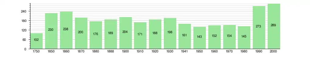 Enges has a population (as of December 2020) of 266.[7] As of 2008, 9.6% of the population are resident foreign nationals.[8] Over the last 10 years (2000–2010) the population has changed at a rate of -3.1%. It has changed at a rate of -7.6% due to migration and at a rate of 8.2% due to births and deaths.[9]