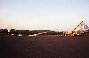 In the 1960s Esrange was established as an ESRO sounding rocket launching range located in Kiruna (Sweden).[2] This location was chosen because it was generally agreed that it was important to carry out a sounding rocket programme in the auroral zone, and for this reason it was essential that ESRO equip itself with a suitable range in the northern latitudes. Access to Kiruna was good by air, road and rail, and the launching range was relatively close to the town of Kiruna. Finally and perhaps decisively, Esrange could be located near Kiruna Geophysical Observatory (subsequently renamed to Swedish Institute of Space Physics). In 1972 ownership and operations of the range was transferred to the Swedish Space Corporation.