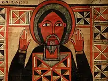 The faith and practice of Orthodox Ethiopian Christians include elements from Miaphysite Christianity as it has developed in Ethiopia over the centuries. Christian beliefs include belief in God (in Ge'ez / Amharic, ′Egziabeher, lit. "Lord of the Universe"), veneration of the Virgin Mary, the angels, and the saints, besides others. According to the Ethiopian Orthodox Church itself, there are no non-Christian elements in the religion other than those from the Old Testament, or Higge 'Orit (ሕገ ኦሪት), to which are added those from the New Testament, or Higge Wongiel (ሕገ ወንጌል).[48] A hierarchy of Kidusan/ቅዱሳን (angelic messengers and saints) conveys the prayers of the faithful to God and carries out the divine will, so when an Ethiopian Christian is in difficulty, he or she appeals to them as well as to God. In more formal and regular rituals, priests communicate on behalf of the community, and only priests may enter the inner sanctum of the usually circular or octagonal church where the tabot ("ark") dedicated to the church's patron saint is housed.[49] On important religious holidays, the tabot is carried on the head of a priest and escorted in procession outside the church. It is the tabot, not the church, which is consecrated. At many services, most parish members remain in the outer ring, where debteras sing hymns and dance.[50]