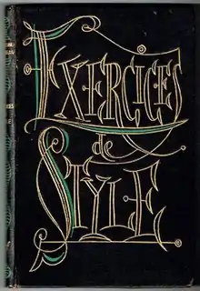 Exercises in Style (French: Exercices de style), written by Raymond Queneau, is a collection of 99 retellings of the same story, each in a different style. In each, the narrator gets on the "S" bus (now no. 84), witnesses an altercation between a man (a zazou) with a long neck and funny hat and another passenger, and then sees the same person two hours later at the Gare St-Lazare getting advice on adding a button to his overcoat. The literary variations recall the famous 33rd chapter of the 1512 rhetorical guide by Desiderius Erasmus, Copia: Foundations of the Abundant Style.