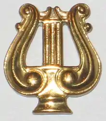 Brass band lyre worn by all members of the Aggie Band