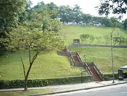 The park overlooks Orchard Road and is set in the heart of the Civic and Cultural District of Singapore, and it now offers a variety of recreational activities as well as historical, educational, entertainment and cultural experiences, and is also used as a place for social events.[25] The park also serves as an important green lung for Singapore's downtown city area. The unique blend of historical relics, lush greenery and expansive lawns has made Fort Canning a hub of cultural and artistic activity. It has been a venue of choice for staging myriad outdoor events and activities like theatre carnivals such as Shakespeare in the Park by SRT, art festivals, starlight cinemas and Ballet Under the Stars performances.[26] WOMAD, Singapore's largest music festival, was a regular feature of the park's calendar of events from 1998 to 2007.[27] The Fort Canning Tunnel passes directly under the hill.[28]