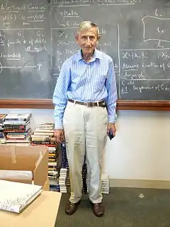 Dyson also did work in a variety of topics in mathematics, such as topology, analysis, number theory and random matrices.[40] In 1973 the number theorist Hugh Lowell Montgomery was visiting the Institute for Advanced Study and had just made his pair correlation conjecture concerning the distribution of the zeros of the Riemann zeta function. He showed his formula to the mathematician Atle Selberg, who said that it looked like something in mathematical physics and that Montgomery should show it to Dyson, which he did. Dyson recognized the formula as the pair correlation function of the Gaussian unitary ensemble, which physicists have studied extensively. This suggested that there might be an unexpected connection between the distribution of primes (2, 3, 5, 7, 11, ...) and the energy levels in the nuclei of heavy elements such as uranium.[41]