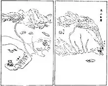 While working in the Department of Arms, the Tang dynasty cartographer Jia Dan (730–805) and his colleagues would acquire information from foreign envoys about their respective homelands, and from these interrogations would produce maps supplemented by textual information.[49] Even within China, ethnographic information on ethnic minorities of non-Han peoples were often described in the local histories and gazetteers of provinces such as Guizhou during the Ming and Qing dynasties.[50] As the Qing dynasty pushed further with its troops and government authorities into areas of Guizhou that were uninhabited and not administered by the Qing government, the official gazetteers of the region would be revised to include the newly drawn-up districts and non-Han ethnic groups (mostly Miao peoples) therein.[50] While the late Ming dynasty officials who compiled the information on the ethnic groups of Guizhou offered scanty details about them in their gazetteers (perhaps due to their lack of contact with these peoples), the later Qing dynasty gazetteers often provided a much more comprehensive analysis.[51] By 1673 the Guizhou gazetteers featured different written entries for the various Miao peoples of the region.[51] Historian Laura Holsteter writes on the woodblock print illustrations of Miao peoples in the Guizhou gazeteer, stating "the 1692 version of the Kangxi era gazetteer show a refinement in the quality of the illustrations by comparison to 1673".[52]