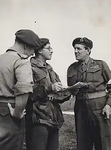 Major General Geoffrey Bourne, GOC 16th Airborne Division, talking with officers of the division during an exercise in Germany while serving with the British Army of the Rhine, 1952.