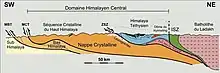 Fig 7: Simplified cross-section of the north-western Himalaya showing the main tectonic units and structural elements by Dèzes (1999). (Download in PDF format)