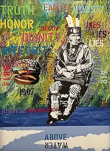 George Chester Longfish[1] (born August 22, 1942) is a First Nations artist, professor, and museum director.[2] His art work blends Pop art with Indigenous motifs, and often features assemblage.[3][4] Many of his works have been featured in major public museum exhibitions, including the Heard Museum, and the Smithsonian's National Museum of the American Indian.[2] He was a professor of Native American Studies at the University of California, Davis (U.C. Davis), for almost 30 years.[5] He served as the museum director at the C.N. Gorman Museum at U.C. Davis, from 1974 to 1996.