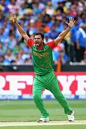 Bowler Mashrafe Mortaza appeals for a wicket during the 2015 Cricket World Cup.