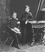 Dmitry's father, Grand Duke Konstantin Nikolayevich, was Admiral General of the Russian Navy and hoped one of his sons would follow in his footsteps. With this in mind, Dmitry received lessons in naval warfare and tactics. His religious education left a big imprint on him. He would be a deeply religious man all his life. As both of his parents were musical, he received singing lesson and learned to play the piano and the violin. Dmitry was a diligent and good student, polite and attentive, capable and kind. He was also very shy and introverted, preferring quiet times reading to more usual pursuits of childhood.[2]