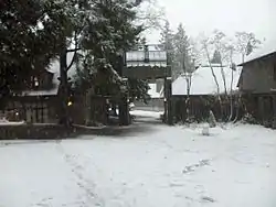 In 1935, the Grand Campus Washout eroded a deep ravine across the east end of the grounds. After several days of erosion, the Gardener's shed collapsed into the ravine. Afterwards, the gully was filled with debris from a nearby landslide.[3] The shed was not rebuilt. The landslide area can be identified today by the younger trees on the fill area and a sudden decrease in elevation where the fill has compacted.