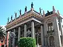 The War of Independence broke out in the state of Guanajuato in the town of Dolores, when Father Miguel Hidalgo y Costilla shouted the “Grito de Dolores” and raised an insurgent army on September 15 and 16, 1810. This army marched to San Miguel, today San Miguel de Allende, and then on to the city of Guanajuato. Just on the outskirts on September 28, 1810, Hidalgo sent a warning letter to city authorities, but it was ignored.[4] Instead, royalist troops and many of the elite made their stand at the Alhóndiga de Granaditas granary, an imposing building with few windows and thick walls. After entering the city unopposed, Hidalgo decided to attack the granary. This was the first battle against Spanish troops in the war and is popularly called the 'Siege of the Alhondiga'.[4][5] The insurgents were unable to take the heavily defended building as royalist gunfire kept them from approaching the only entrance until a miner by the name of Juan José de los Reyes Martínez, better known as El Pípila, strapped a large flat stone onto his back for protection. Crawling, he carried a flask of tar and a torch. When he reached the wooden doors of the main entrance, he smeared it with the tar and set it on fire. This allowed the insurgents to penetrate the building, defeat the Spanish royalist army and elite, and take over the heavily fortified and defended building. This action is commemorated by a colossal statue of El Pípila on a hill overlooking the city.[16]