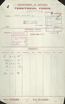 - ↑ "Military Forces – Reserve of Officers". Otago Daily Times. No. 23959. 7 November 1939. Retrieved 1 April 2018.