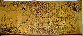 Spanish ships were occasionally shipwrecked on the coasts of Japan due to bad weather, initiating contacts with the country. The Spanish wished to expand the Christian faith in Japan. Efforts to expand influence in Japan were met by stiff resistance from the Jesuits, who had started the evangelizing of the country in 1549, as well as by the opposition of the Portuguese and Dutch who did not wish to see Spain participate in Japanese trade. However, some Japanese, such as Christopher and Cosmas, are known to have crossed the Pacific onboard Spanish galleons as early as 1587.[6] It is known that gifts were exchanged between the governor of the Philippines and Toyotomi Hideyoshi, who thanks him in a 1597 letter, writing "The black elephant in particular I found most unusual."[7]