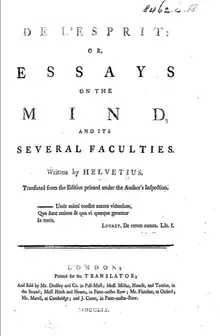 - ↑ Helvétius, Claude Adrien, De l'esprit or, Essays on the Mind, and Its Several Faculties, (London: 1759), p. 286