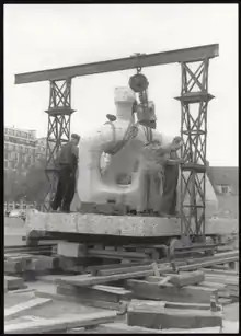 - ↑ Enscripted on the plaque at the base of the sculpture.