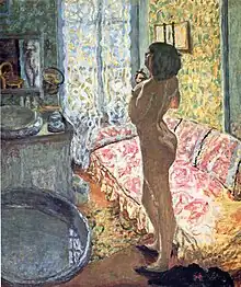 The study and artistic representation of the human body has been a constant throughout the history of art, from prehistoric times (Venus of Willendorf) to the present day. One of the cultures where the artistic representation of the nude proliferated the most was Ancient Greece, where it was conceived as an ideal of perfection and absolute beauty, a concept that has endured in classical art until today, and largely conditioning the perception of Western society towards the nude and art in general. In the Middle Ages its representation was limited to religious themes, always based on biblical passages that justified it. In the Renaissance, the new humanist culture, of a more anthropocentric sign, propitiated the return of the nude to art, generally based on mythological or historical themes, while the religious ones remained. It was in the 19th century, especially with Impressionism, when the nude began to lose its iconographic character and to be represented simply for its aesthetic qualities, the nude as a sensual and fully self-referential image. In more recent times, studies on the nude as an artistic genre have focused on semiotic analyses, especially on the relationship between the work and the viewer, as well as on the study of gender relations. Feminism has criticized the nude as an objectual use of the female body and a sign of the patriarchal dominance of Western society. Artists such as Lucian Freud and Jenny Saville have elaborated a non-idealized type of nude to eliminate the traditional concept of nudity and seek its essence beyond the concepts of beauty and gender.[2]
