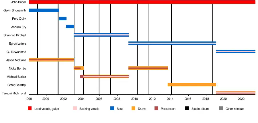 • Terepai Richmond – drums, percussion, backing vocals (2019–present)