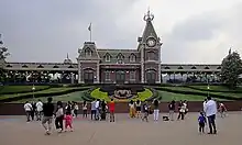 Hong Kong Disneyland had one of the shortest construction periods of any Disneyland-style theme park. On 12 January 2003, more than 400 guests celebrated the groundbreaking of Hong Kong Disneyland after the finishing of land reclamation in Penny's Bay. The audience included Tung Chee Hwa; Michael D. Eisner, former chairman and CEO of The Walt Disney Company; Bob Iger, president of The Walt Disney Company; and Jay Rasulo, former president of Walt Disney Parks and Resorts.[20] On 23 September 2004, a special "castle topping ceremony" was held in the park to commemorate the placing of the tallest turret on Sleeping Beauty Castle. Hong Kong Disneyland officially opened to the public on 12 September 2005 by then Chief Executive of Hong Kong Donald Tsang, Chief Executive Officer Michael Eisner, and President Bob Iger. Beijing offered its significant support by sending Zeng Qinghong, Vice President of the People's Republic of China.[19] In order to help Hong Kong Disneyland grow, Beijing also deliberately slowed down the development of Shanghai Disney Resort, which was first planned for the early 2000s.[19]