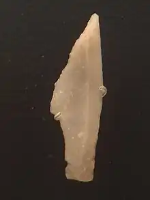 Sharp flint piece from Bjerlev Hede in central Jutland. Dated around 12,500 BC and considered the oldest hunting tool from Denmark.