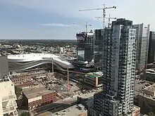 Ice District is a $2.5 billion mixed-use sports and entertainment district being developed on 10 hectares (25 acres) of land in Downtown Edmonton and a portion of the neighbourhood of Central McDougall. Its main attraction is Rogers Place, the home arena of the Edmonton Oilers professional ice hockey team. When completed the area will be Canada's largest mixed-use and entertainment district.[1][2] The developers of the district are the Katz Group[3] and the ONE Development Group.[4][5] On July 13, 2015, it was announced that the area of the city surrounding the arena from 101 and 104 Street to 103 and 106 Avenue would be referred to as "Ice District" – a name created by Daryl Katz.[6][7]