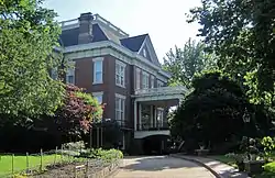 The Illinois Governor's Mansion (formerly, Illinois Executive Mansion) is the official residence of the governor of Illinois. It is located in the state capital of Springfield, Illinois, near the Illinois State Capitol building, and the Lincoln Home National Historic Site. The Italianate-style Mansion was designed by Chicago architect John M. Van Osdel with a modified H-shaped configuration with a long central section, and the front and back on the sides of the 'H'. The 16-room manor was completed in 1855 and was first occupied by governor Joel Matteson, who held the official grand opening on January 10, 1856. It is one of the oldest historic residences in the state of Illinois and one of the three oldest continuously occupied governor's mansions in the United States. In 1898 alterations to the exterior added neoclassical elements. In 1972, the Illinois Governor's Mansion Association was founded as a charitable corporation to assist in the maintenance and programming at the mansion.[2] The Mansion was added to the National Register of Historic Places in 1976.