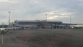 Iloilo International Airport (Hiligaynon: Pangkalibutan nga Hulugpaan sang Iloilo, Filipino: Paliparang Pandaigdig ng Iloilo; IATA: ILO, ICAO: RPVI), also known as Iloilo Airport,[3][4] and as Cabatuan Airport,[5] after the municipality of Cabatuan, Iloilo,[3] where it is located,[3] is the airport serving the province of Iloilo in the Philippines,[6] including its capital city, Iloilo City, the regional center of the Western Visayas region. It opened its doors to commercial traffic on June 14, 2007, after a decade of planning and construction, replacing Mandurriao Airport in Mandurriao, Iloilo City, which had been in service for over seventy years. As a result, the new airport inherited its IATA and ICAO airport codes, as well as its position as the fourth-busiest airport in the Philippines,[7] from its predecessor.[8] It was the fifth-busiest airport in the Philippines in 2022.[9] It is the first airport in both Western Visayas and the island of Panay to be built to international standards, and it is also considered to be the primary gateway into the region.[10] It is classified as an international airport by the Civil Aviation Authority of the Philippines.