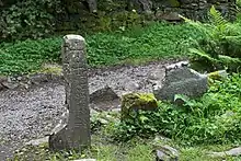The graveyard is also ancient; buried there is Muirgheas O'Nioc (Muirgius ua Nioc; died 1128), coarb of Tuam.[12] (He is often incorrectly described as Archbishop of Tuam, but that title didn't exist until 1152.)[13] Other important families in the region also used the graveyard: Kinnaveys, Conways, Sullivans, Murphys, Lyddans, Butlers.