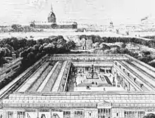 The 1806 exposition lasted 24 days, with 1,422 exhibitors.[6] It was held from September 25 to October 19 on the Esplanade des Invalides, arranged by Chaptal's successor as Minister of the Interior, Jean-Baptiste de Nompère de Champagny.[11] Awards included 54 gold medals, 97 silver medals and 80 bronze medals.[23] Nicolas Appert presented a selection of bottled fruits and vegetables from his manufacture but did not win any reward.[24] Jean-Baptiste Launay presented the first model for a dome for the Paris wheat market and two cast iron bridges for the capital.[25]